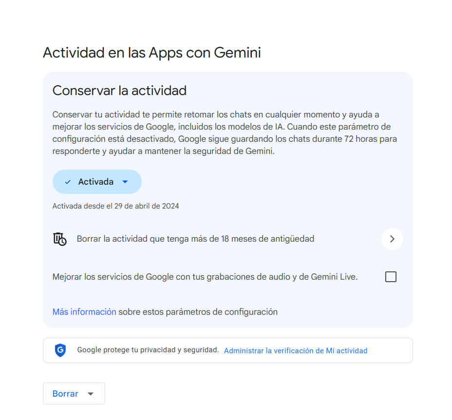 Dentro verás un interruptor llamado “información que has pedido a Gemini que guarde”. Actívalo. Esto permitirá que la IA recuerde tus preferencias o detalles sobre ti que le hayas contado, evitando que tengas que repetirlos en cada conversación.
