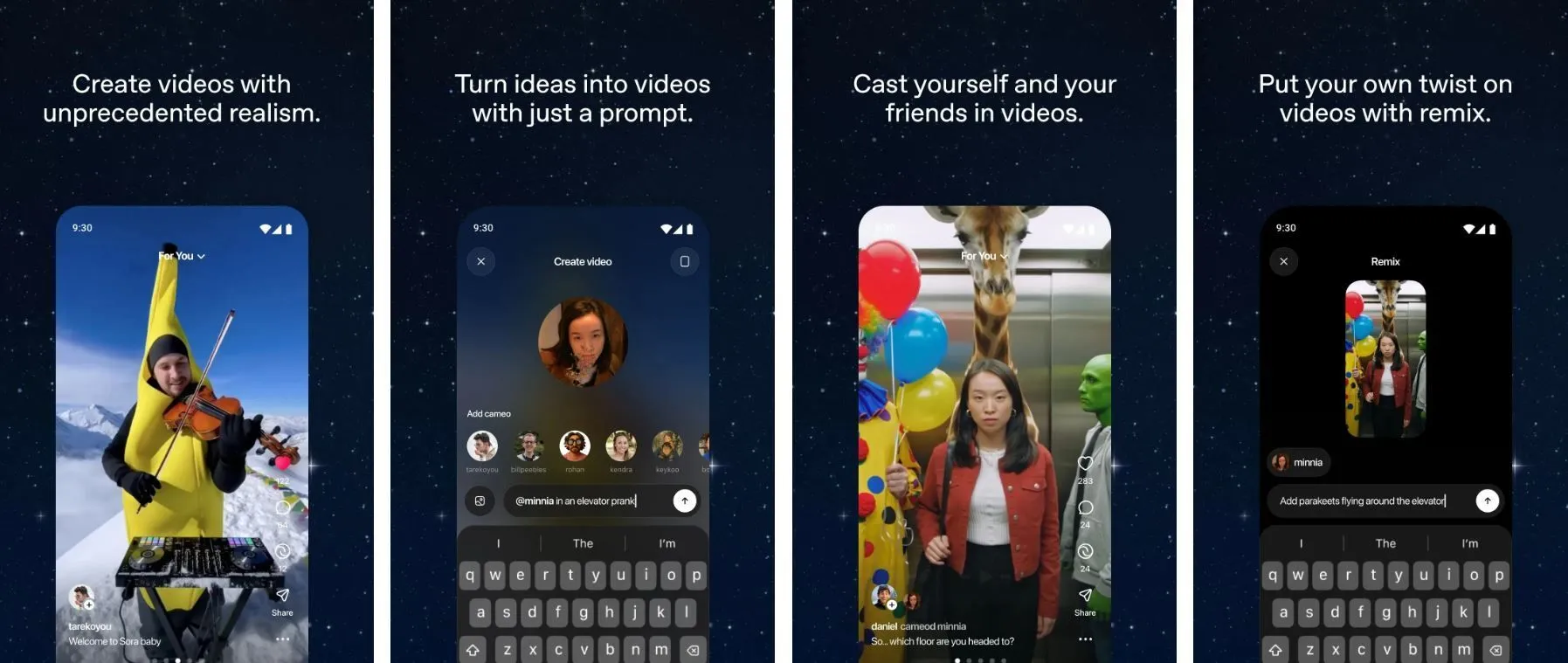 La app está impulsada por el modelo de vídeo Sora 2 de OpenAI, y no solo permite pedirle que genere un vídeo cualquiera con un prompt simple de texto, sino que también es posible sumar a los propios usuarios a los vídeos para crear cortos basados en escenarios y situaciones personalizadas.
